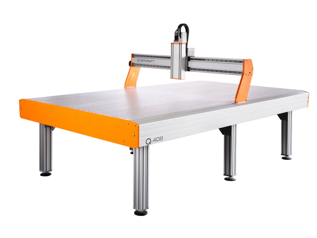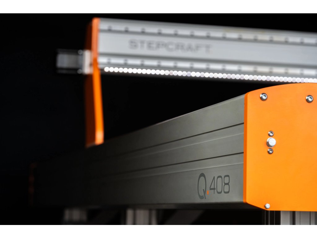 STEPCRAFT Q.408 může bez námahy zpracovávat deskové materiály až do délky 2,60 metru a šířky až 1,30 metru. Krokové motory NEMA 34 s uzavřenou smyčkou zajišťují rychlý spolehlivý a bezchybný pohon na všech osách. Samotný portál CNC je poháněn pomocí dvou elektronicky synchronizovaných krokových motorů pro maximální rychlost a bezpečnost pohybu.