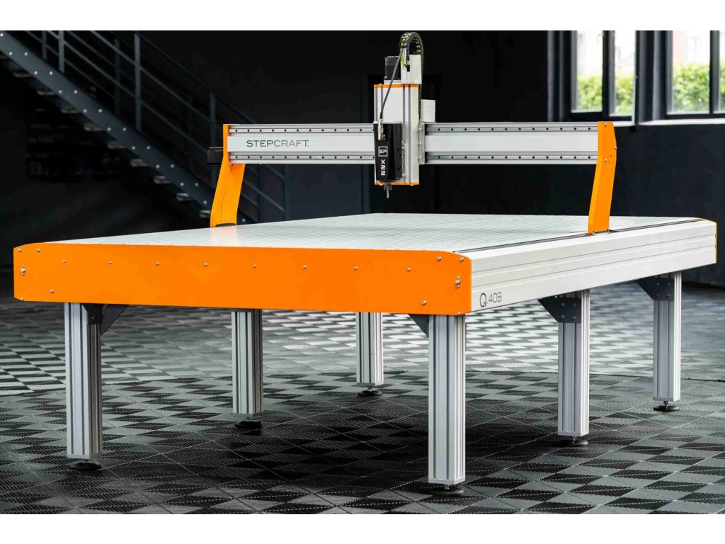 STEPCRAFT Q.408 může bez námahy zpracovávat deskové materiály až do délky 2,60 metru a šířky až 1,30 metru. Krokové motory NEMA 34 s uzavřenou smyčkou zajišťují rychlý spolehlivý a bezchybný pohon na všech osách. Samotný portál CNC je poháněn pomocí dvou elektronicky synchronizovaných krokových motorů pro maximální rychlost a bezpečnost pohybu.