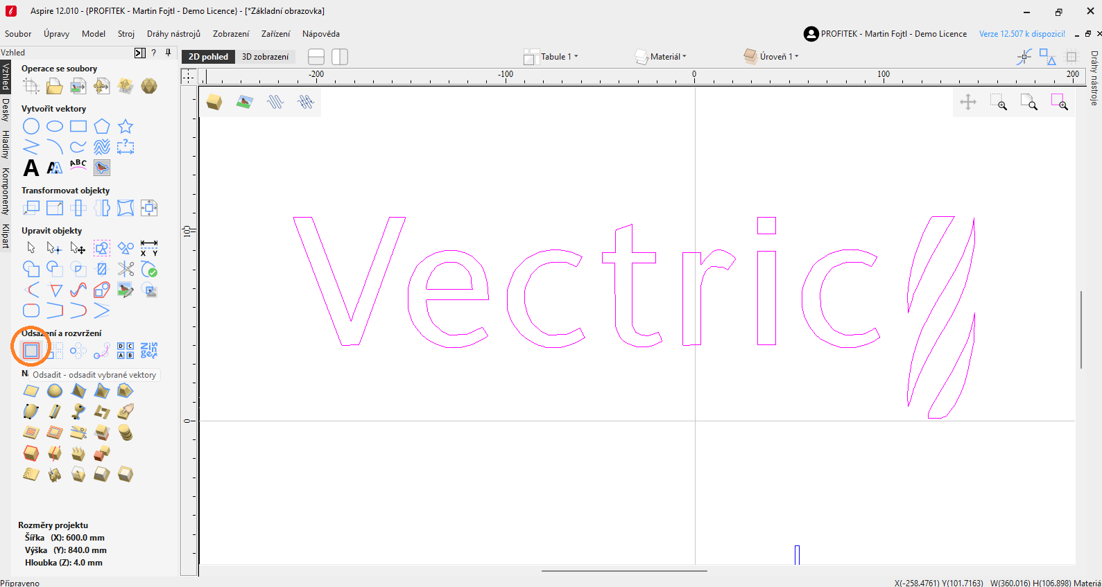 💡 TIP: Stejného efektu lze bez potřeby odsazování vektoru dosáhnout pomocí funkce duplikovat nástrojové dráhy a následně u duplikovaných drah změnit kapesní přídavek(příspěvek) a po přepočítání pokračovat krokem č.4