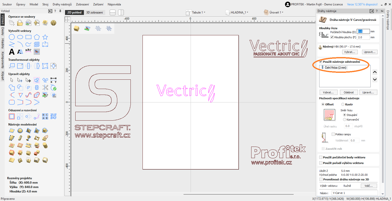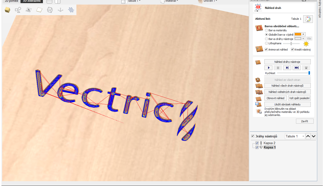 - Nechte Vectric vygenerovat dráhy pro oba nástroje
