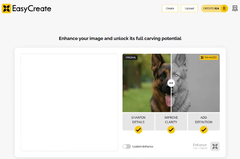 EasyCreate je cloudová AI služba od Vectric, dostupná na adrese easycreate.vectric.com. Funguje jako samostatná webová aplikace, ale je plně integrována s programy VCarve a Aspire – výsledný model si jednoduše stáhnete a importujete přímo do svého projektu.